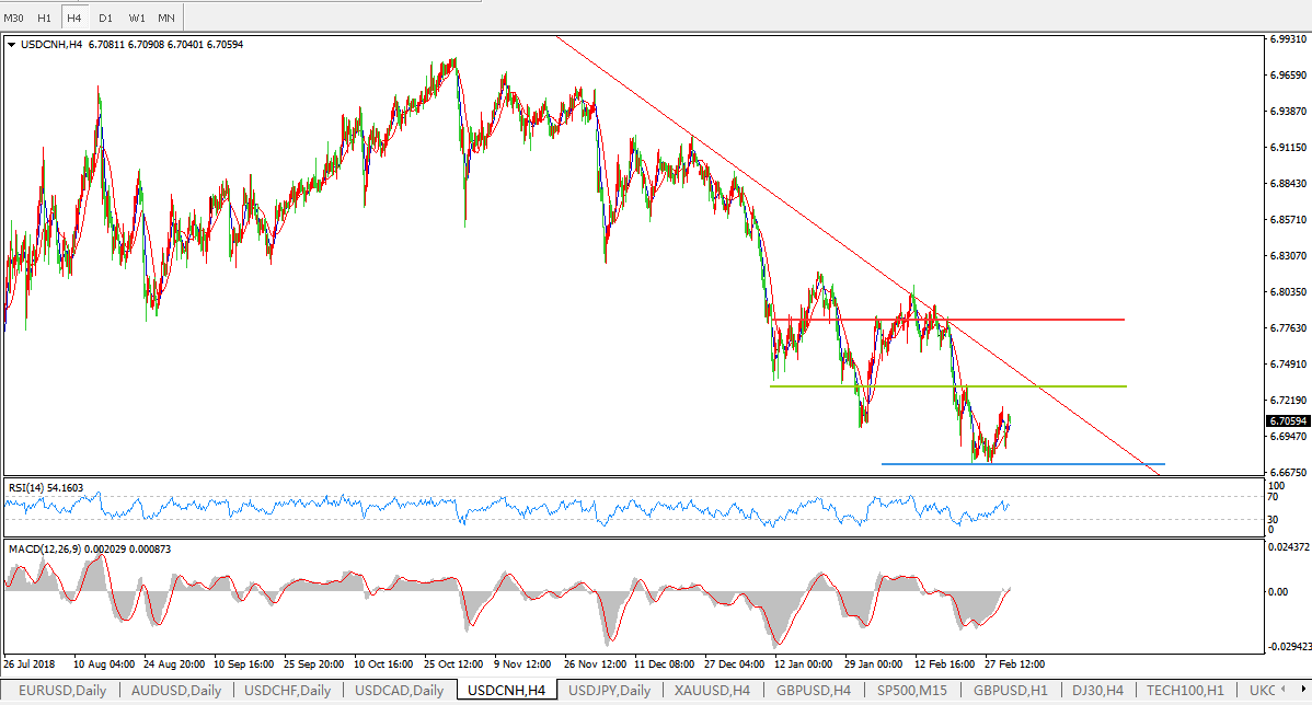 美元兑人民币USDCNH 4小时图: