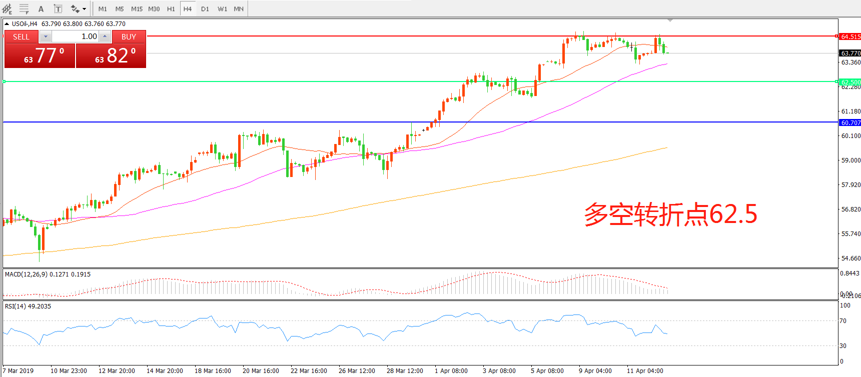 多空转折点:62.50