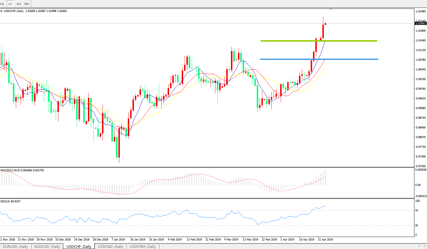 美元瑞郎USDCHF   日线图: