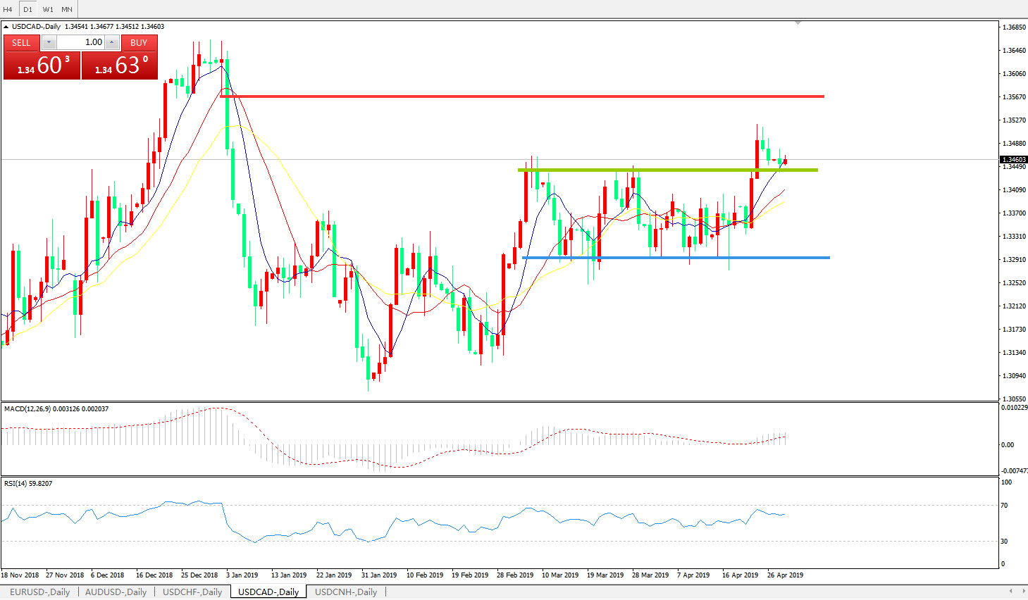 美元兑加元USDCAD 日线图: