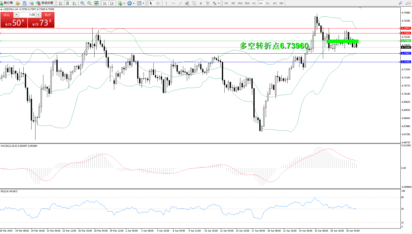 交易策略:6.73960下方看跌,目标6.73067、6.72455
