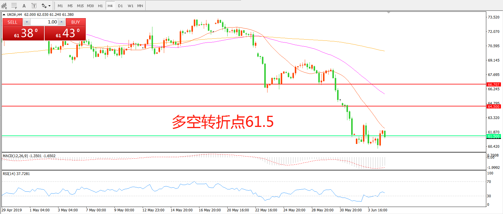多空转折点:61.50