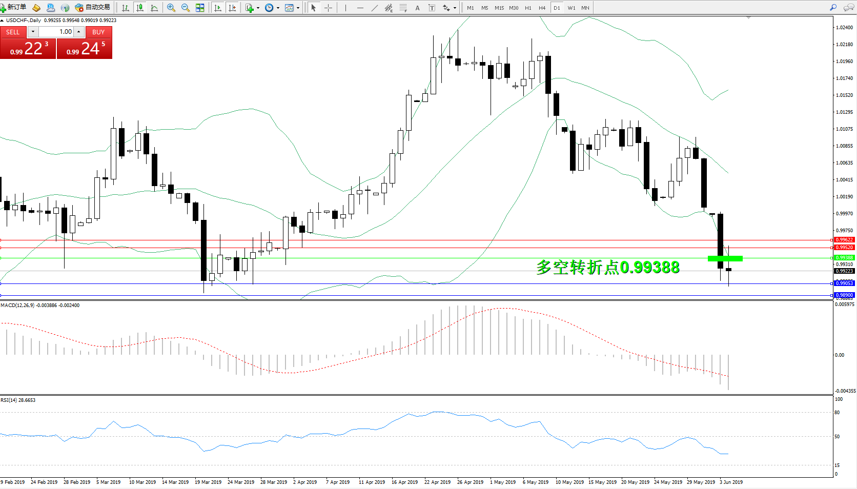 交易策略:0.99388下方看跌,目标0.990530.98900