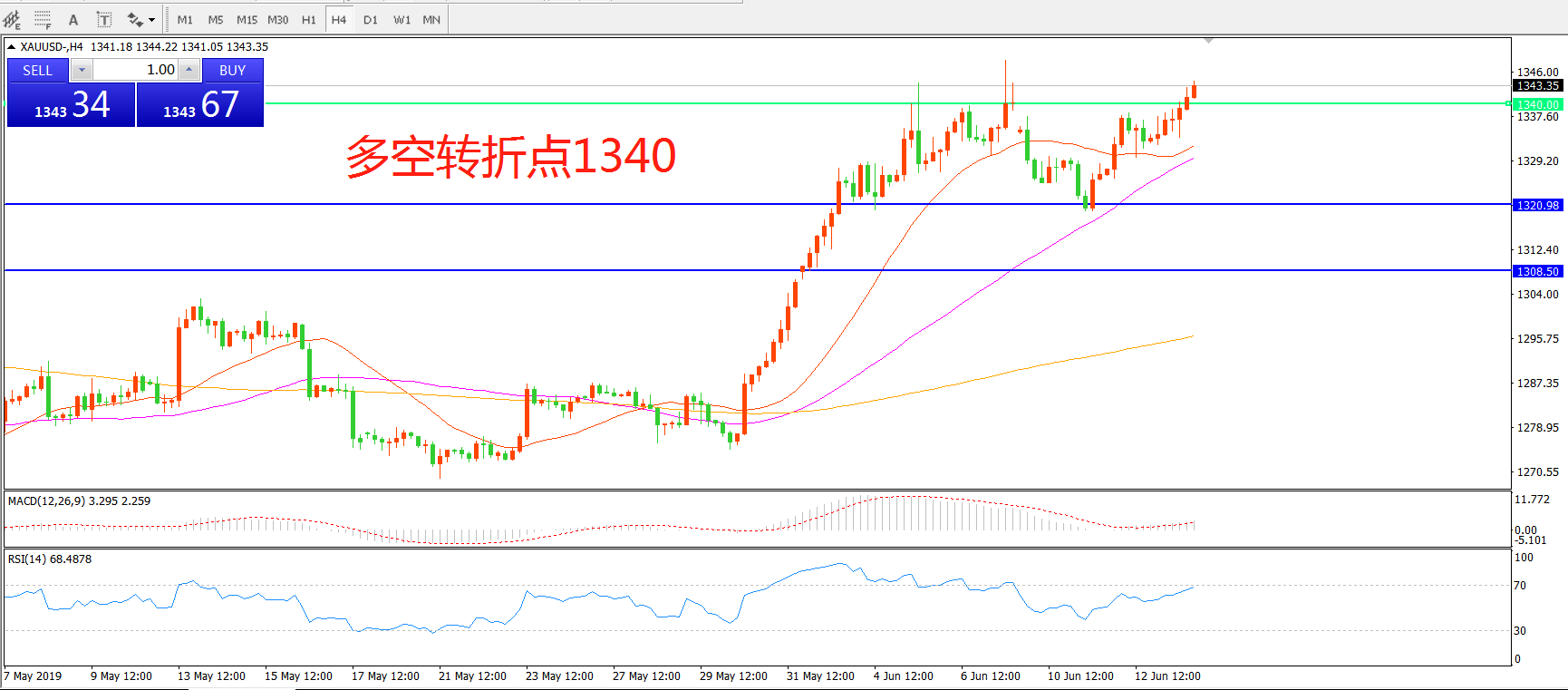 多空转折点:1340.00