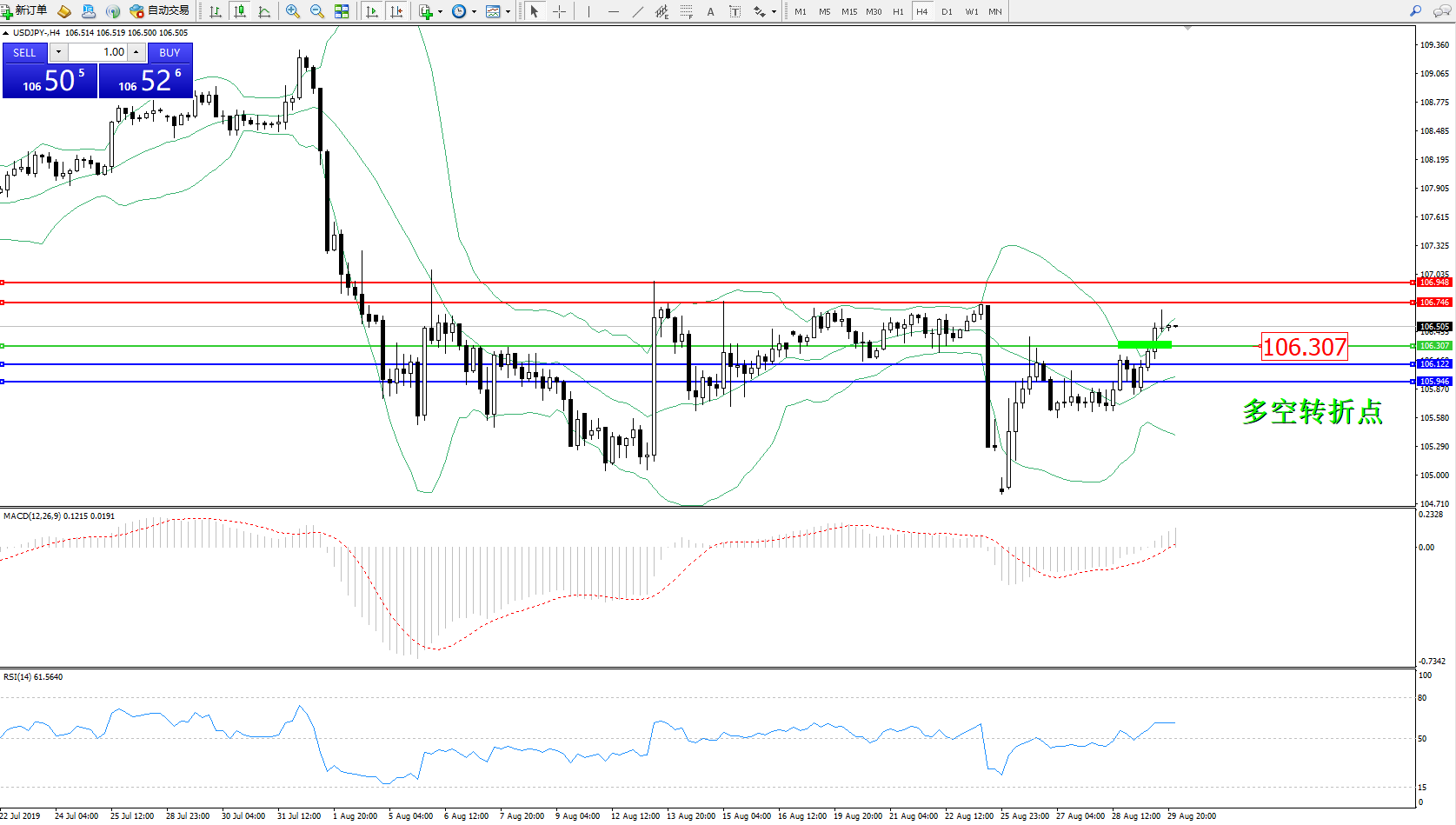 技术点评:低位反转拉升上行后突破缓慢突破布林带指标中轨压制震荡上行,延续上轨走势持续上扬中,布林带指标呈张口态势,MACD指标突破0轴线后缓慢上移,RSI指标处于50均衡线上方多头区域平移中;