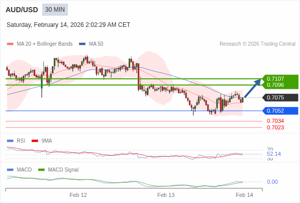 替代方案: 在0.7052以下,期待0.7034和0.7023。