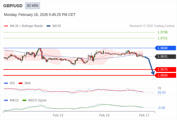 英镑/美元 当日内 : 看跌,在 1.3668 之下。