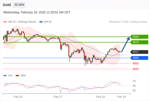 在 4885 之上,看涨,目标价位为 4970 ,然后为 5000 。