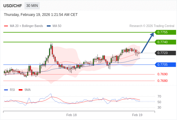 在 0.7705 之上,看涨,目标价位为 0.7740 ,然后为 0.7755 。