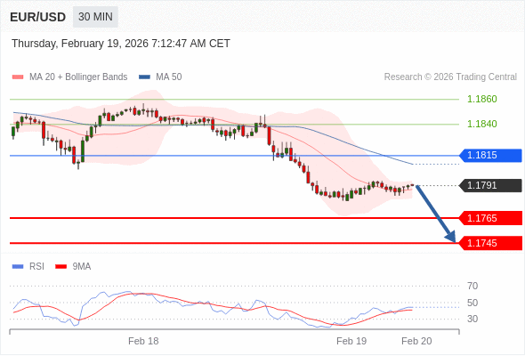 在 1.1815 之下,看跌,目标价位为 1.1765 ,然后为 1.1745 。