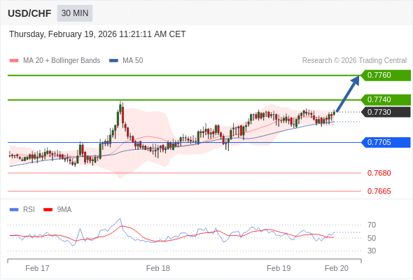 在 0.7705 之上,看涨,目标价位为 0.7740 ,然后为 0.7760 。