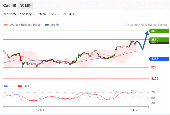Cac 40 当日内: 期待8530。