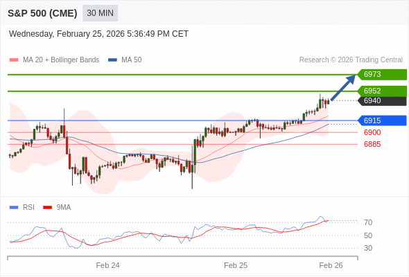 在 6915 之上,看涨,目标价位为 6952 ,然后为 6973 。