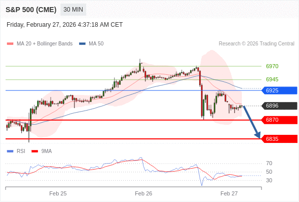 交易策略: 在 6925 之下,看跌,目标价位为 6870 ,然后为 6835 。