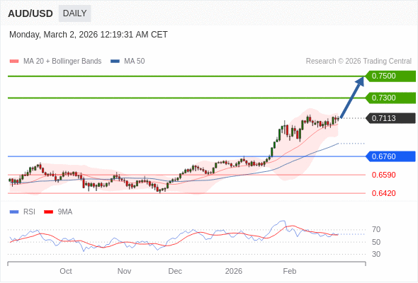 在 0.6760 之上,看涨,目标价位为 0.7300 ,然后为 0.7500 。
