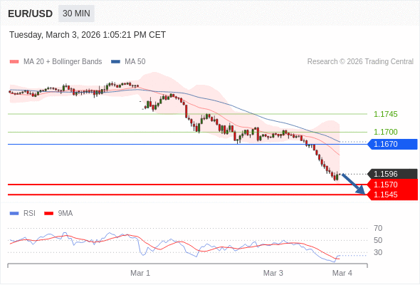 交易策略: 在 1.1670 之下,看跌,目标价位为 1.1570 ,然后为 1.1545 。