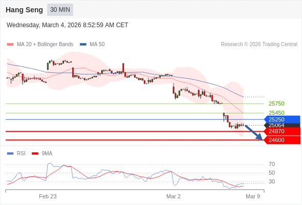 在 25250 之下,看跌,目标价位为 24870 ,然后为 24600 。