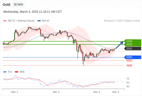 在 5085 之上,看涨,目标价位为 5225 ,然后为 5260 。