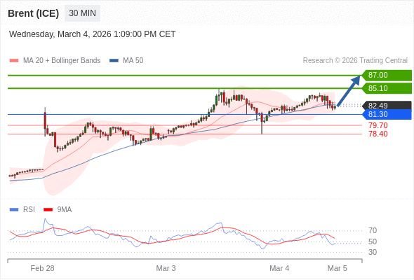 交易策略: 在 81.30 之上,看涨,目标价位为 85.10 ,然后为 87.00 。