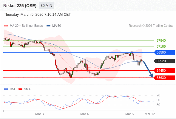 日经225股指期货 (OSE) 当日内: 短期关键阻力位在56500。