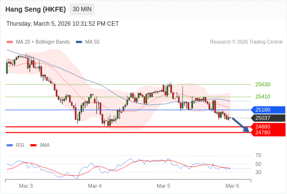 在 25180 之下,看跌,目标价位为 24880 ,然后为 24780 。