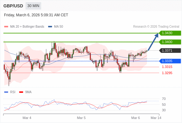 在 1.3335 之上,看涨,目标价位为 1.3400 ,然后为 1.3430 。