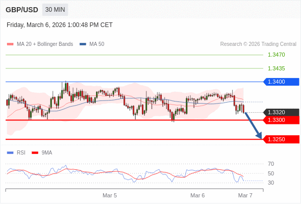 交易策略: 在 1.3400 之下,看跌,目标价位为 1.3300 ,然后为 1.3250 。
