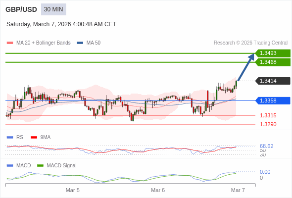 英镑/美元 当日内 : 看涨,当 1.3358 为支撑位。