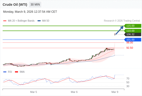 美国原油 (WTI) 期货 (J6) 当日内: 目标位为115.00。