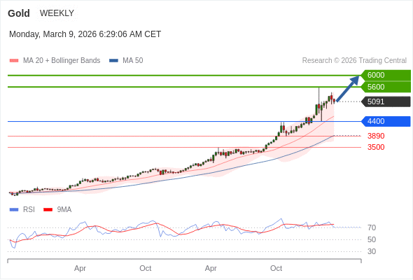 在 4400 之上,看涨,目标价位为 5600 ,然后为 6000 。