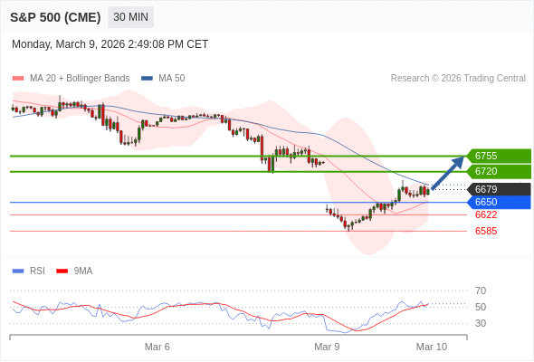 在 6650 之上,看涨,目标价位为 6720 ,然后为 6755 。