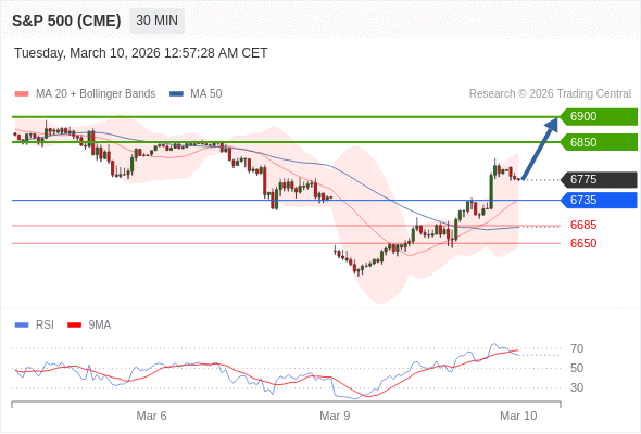 在 6735 之上,看涨,目标价位为 6850 ,然后为 6900 。