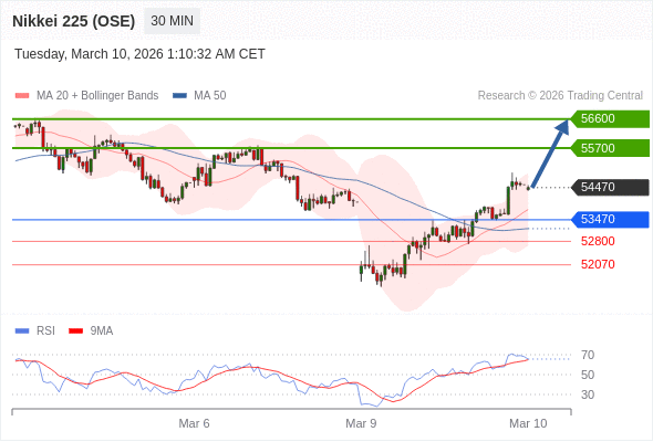 在 53470 之上,看涨,目标价位为 55700 ,然后为 56600 。