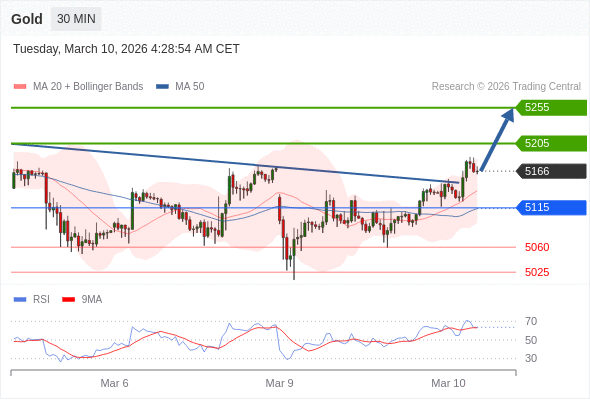 在 5115 之上,看涨,目标价位为 5205 ,然后为 5255 。