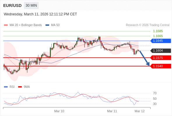 在 1.1645 之下,看跌,目标价位为 1.1575 ,然后为 1.1540 。