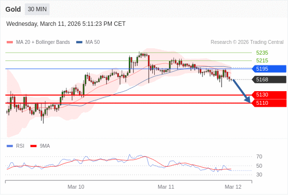 在 5195 之下,看跌,目标价位为 5130 ,然后为 5110 。