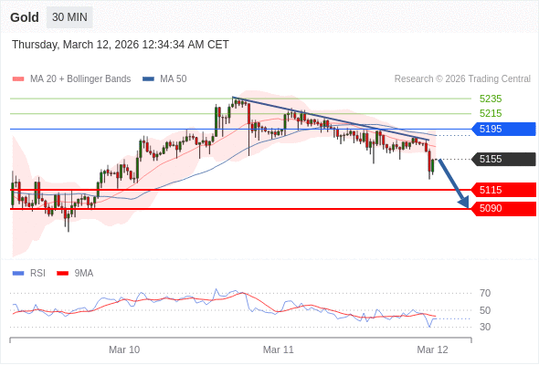 在 5195 之下,看跌,目标价位为 5115 ,然后为 5090 。