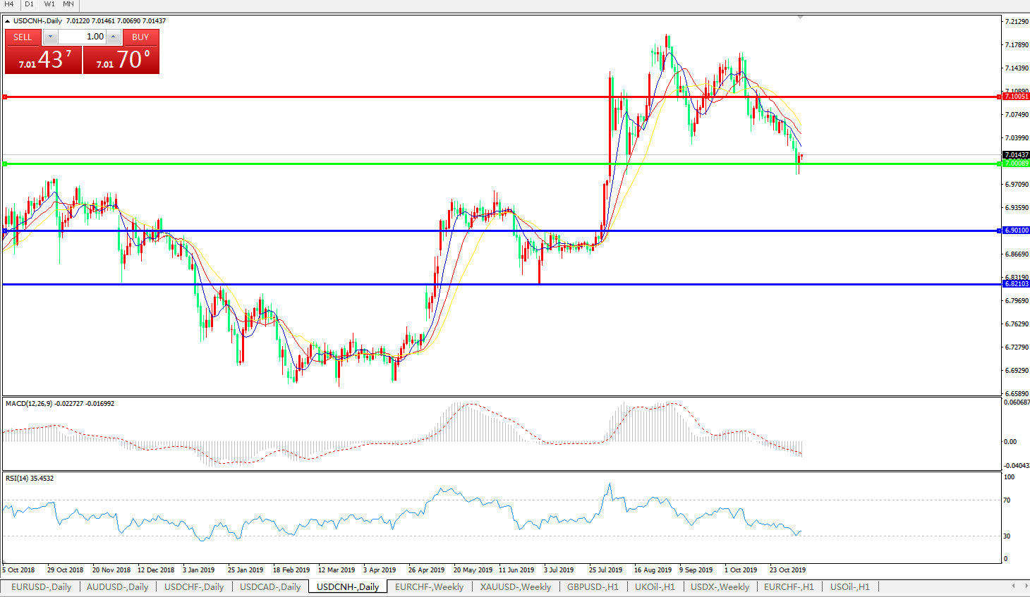 交易策略: 在7.0000之上,看涨,目标价位为7.1000,然后为7.2000。
