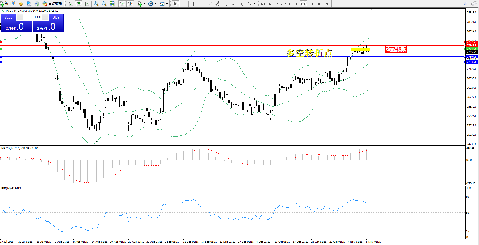恒指HK50 ——4小时K线图显示: