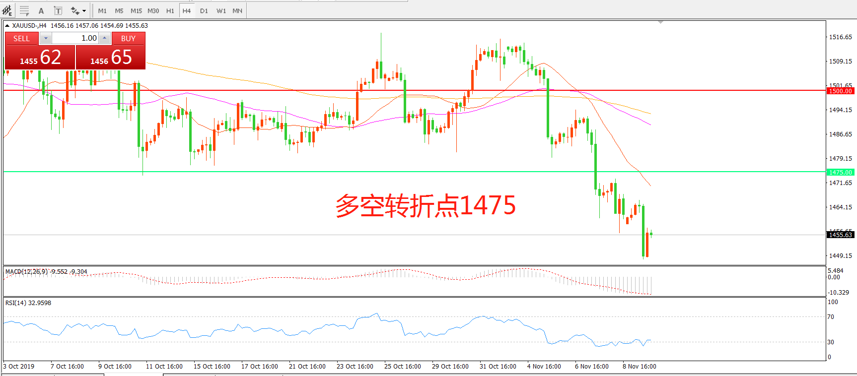 多空转折点:1475.00