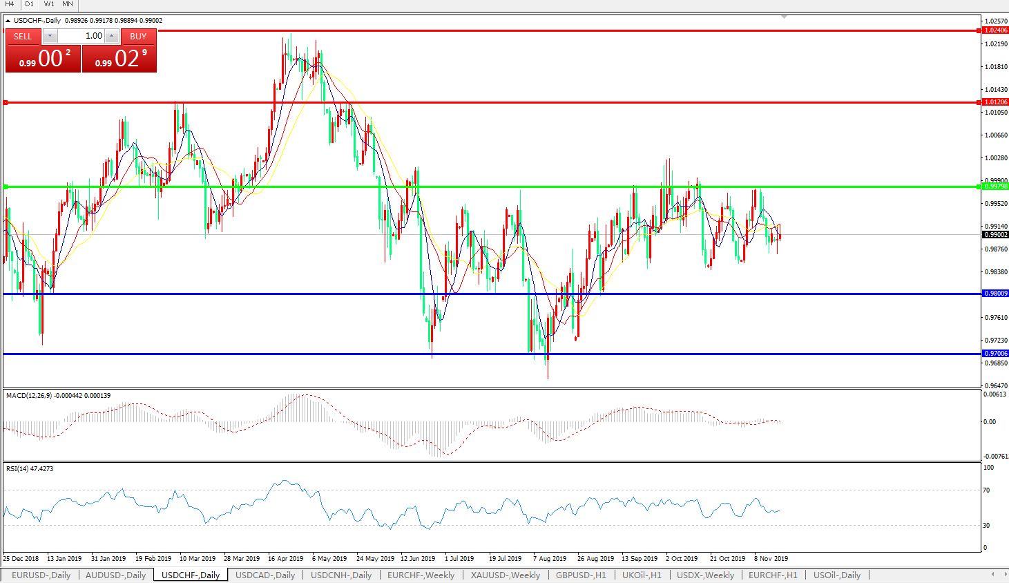 交易策略:0.9980下方看跌,目标0.9800、0.9700