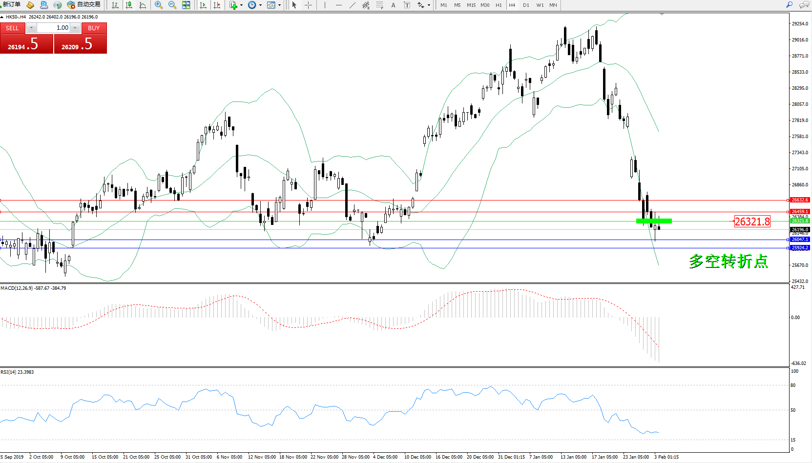恒指HK50 ——4小时K线图显示: