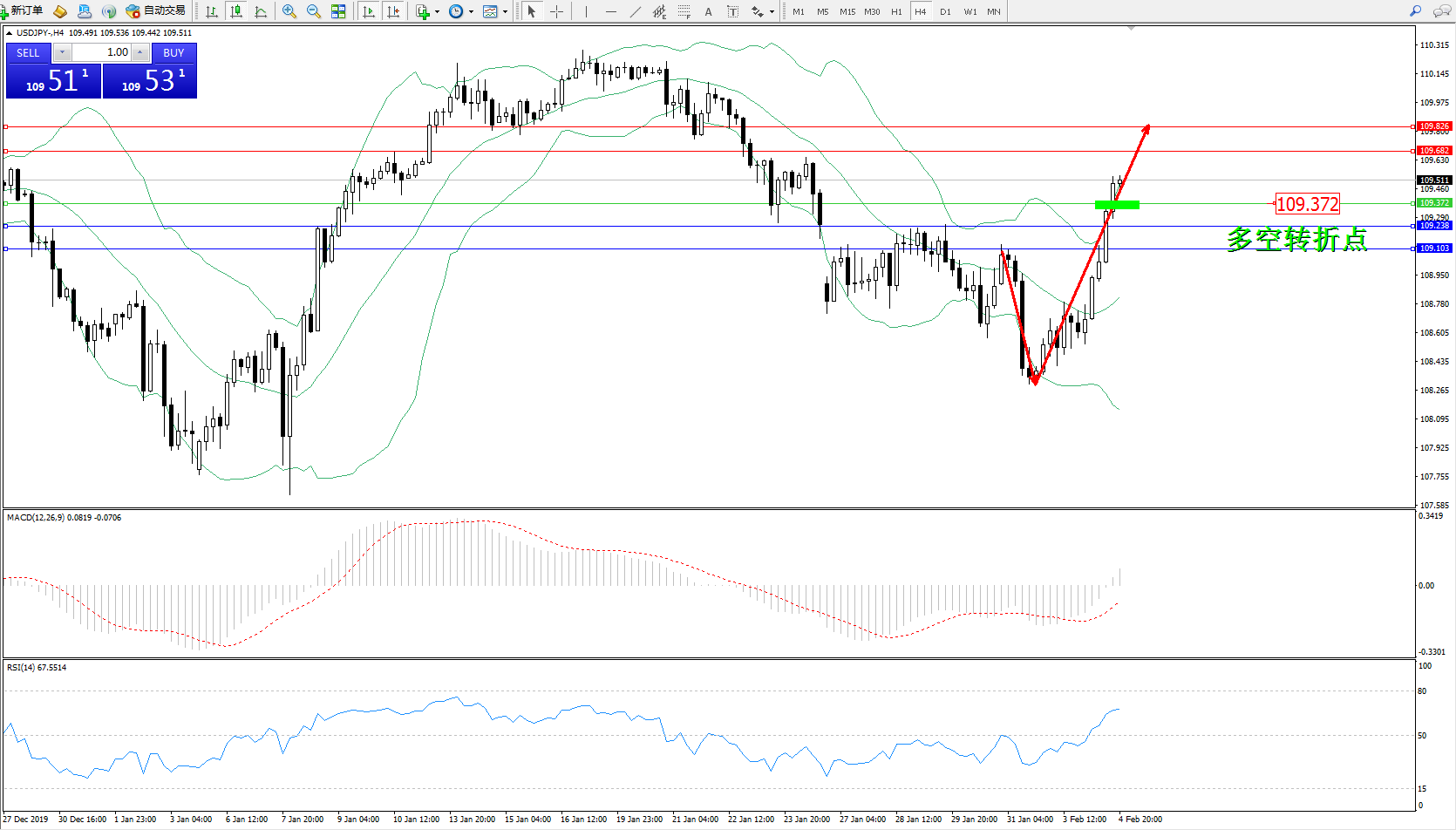 技术点评:在持续震荡下移后触及布林带指标下轨附近得到支撑,多头动力强势拉升上扬,突破上轨并延续上行走势持续中,且布林带指标呈张口走势中,有进一步上行态势,MACD指标多头动力强势拉升突破0轴线进入多头区域持续上行中,RSI指标处于多头区域震荡上行态势良好;