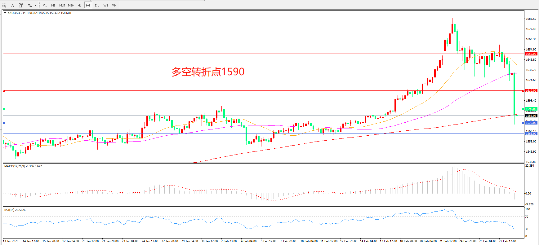 多空转折点:1590.00