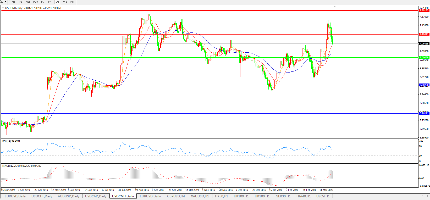 美元兑人民币USDCNH    日线图: