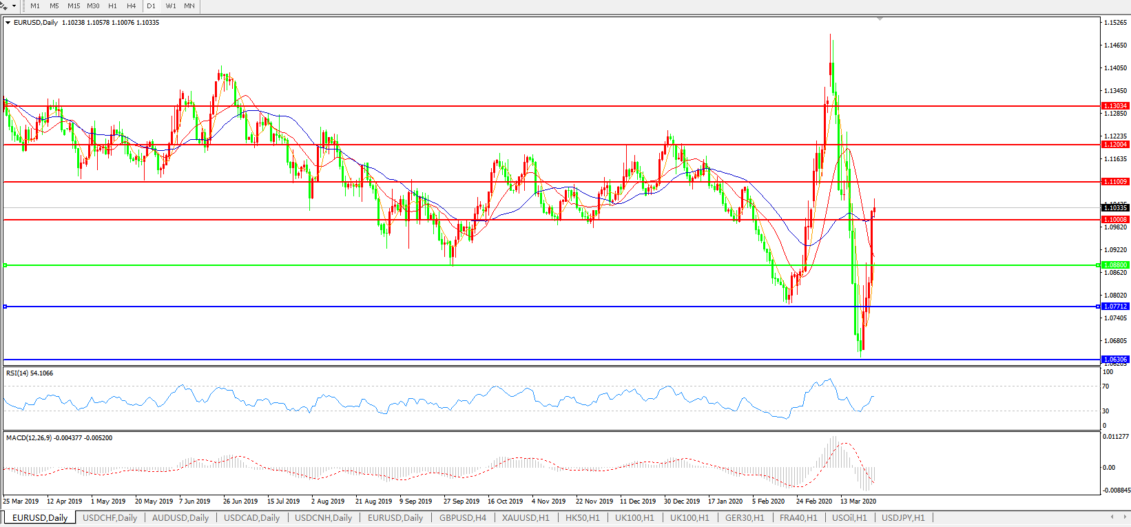 欧元兑美元EURUSD 日线图: