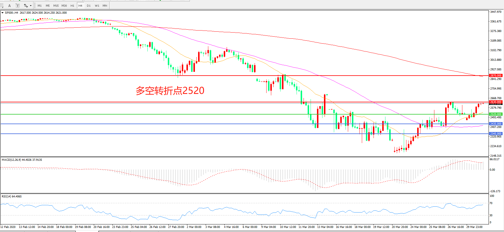 多空转折点:2520.00