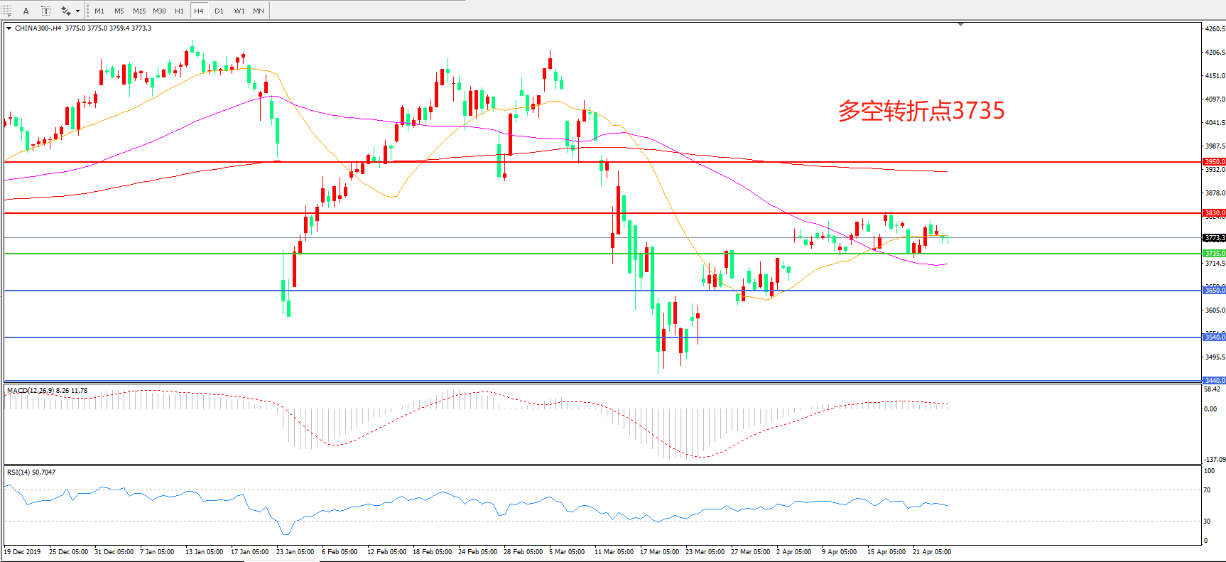 沪深300  CHINA 300   4小时图