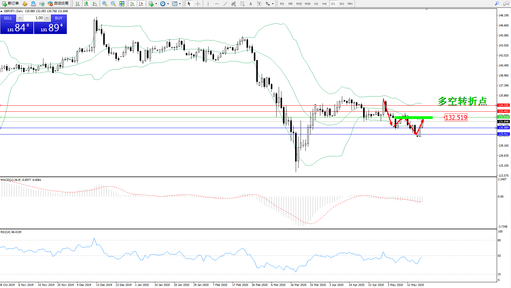技术点评:空头动力延续布林带指标中下轨区间弱势震荡下移,底部缓慢回升至中轨附近遇阻开始震荡,关注中轨附近节点,布林带指标呈张口走势后有收口迹象,MACD指标处于0轴线下方弱势整理平移中,RSI指标处于空头区域出现快速回升迹象,即将触及50均衡线附近节点;