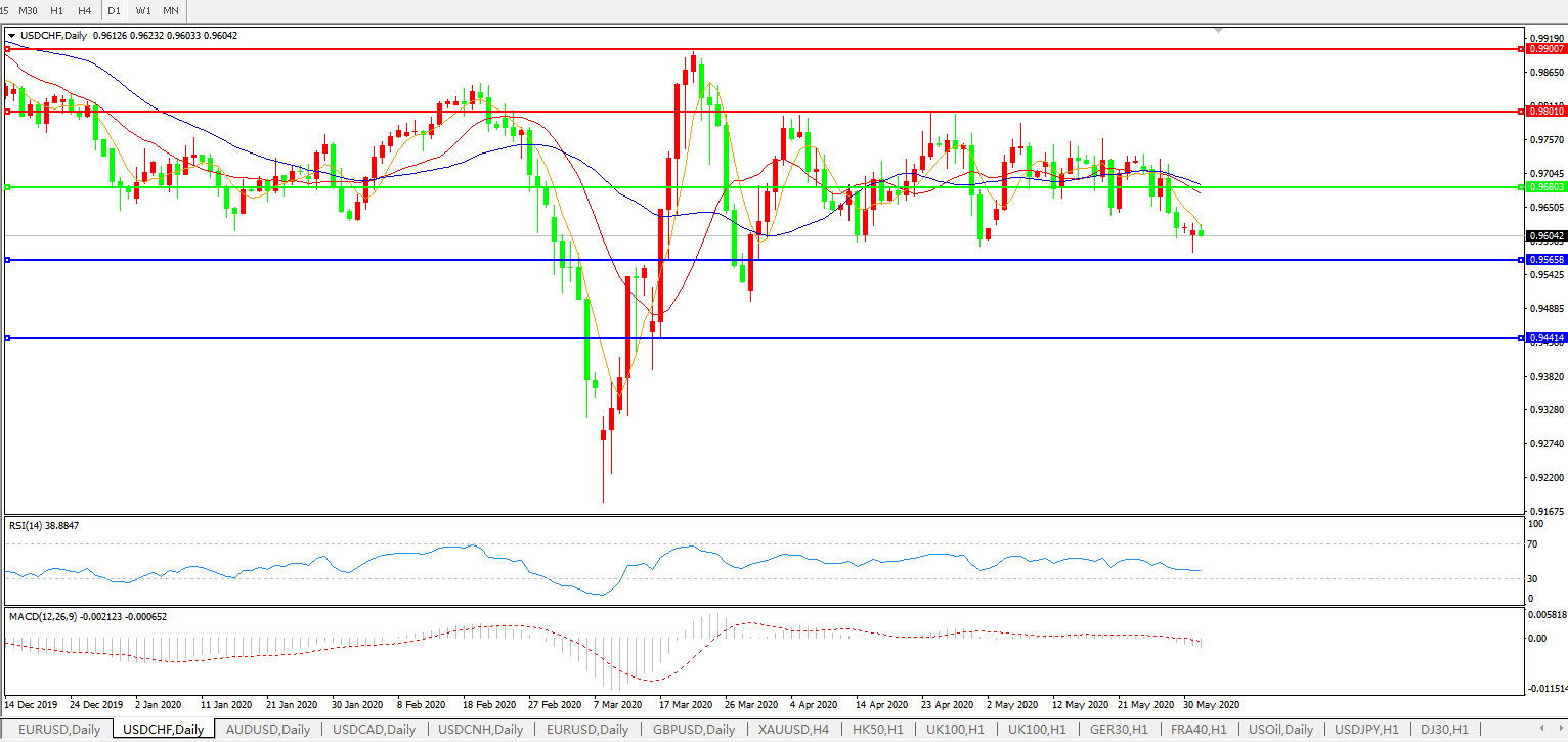美元兑瑞郎USDCHF 日线图: